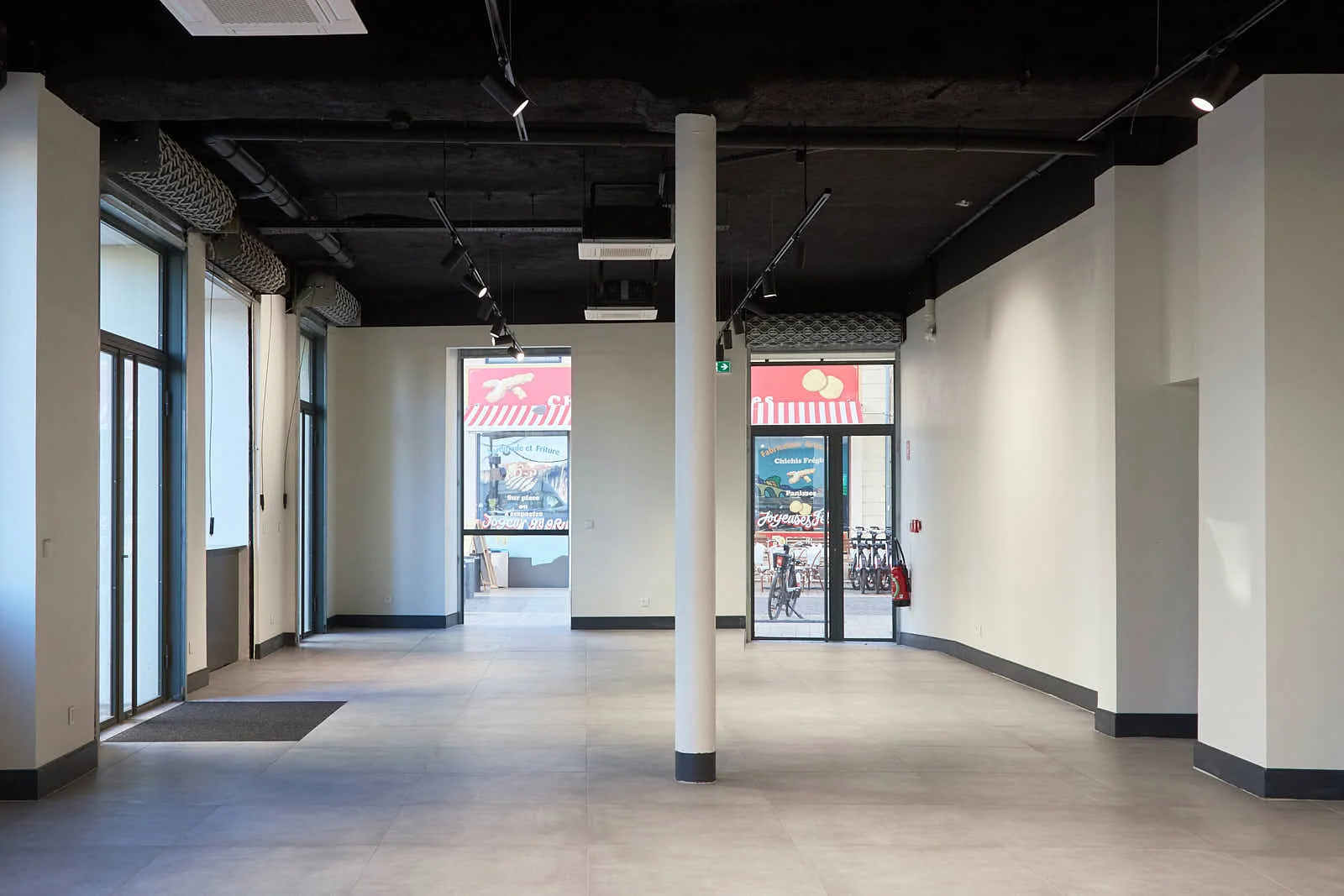 Ce pop-up store à Marseille, qui fait 132m² de surface de vente, est idéalement situé en plein cœur de Marseille. Spacieux et lumineux, il est parfaitement adapté à l'exposition de vos créations grâce à sa belle hauteur sous plafond et ses poutres industrielles apparentes. Ce pop up store marseillais est modulable selon vos envies et peut être séparé en deux pour créer deux boutiques distinctes.