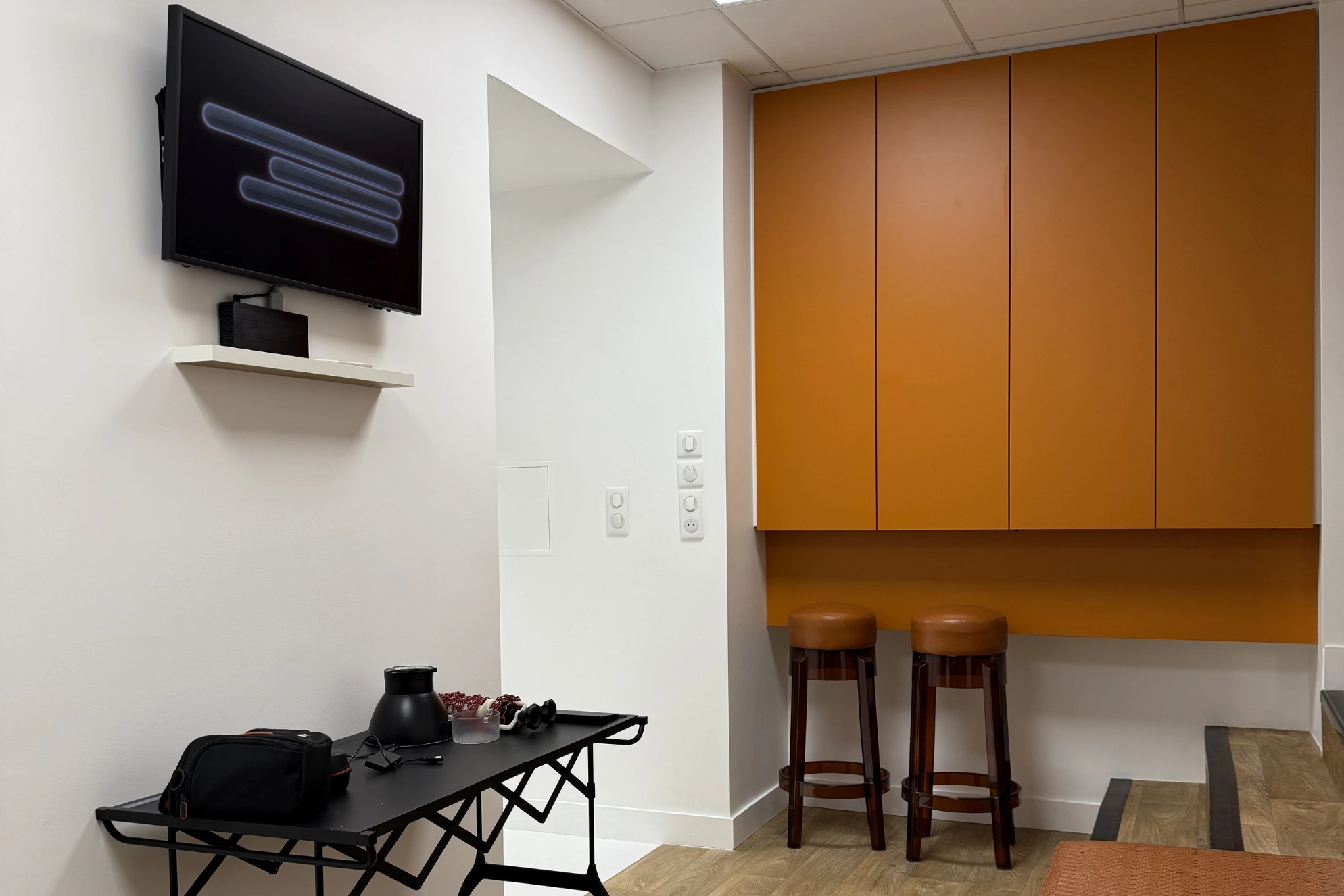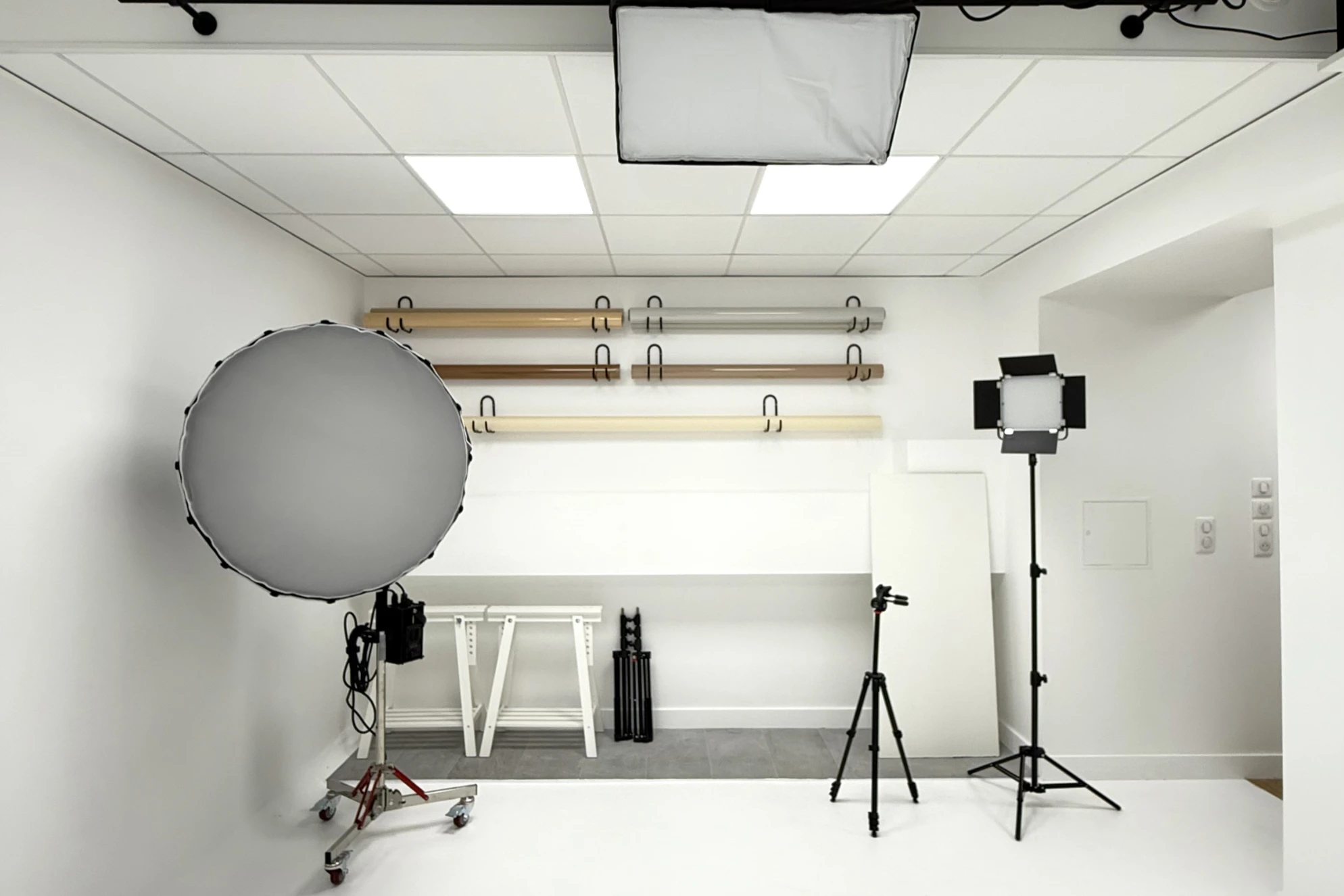 Ce showroom Opéra de 60 m² offre un format particulièrement recherché : à la fois espace d’accueil et véritable outil de production. Idéal comme studio photo Opéra, il dispose de tout l’équipement nécessaire pour des shootings, tournages vidéo ou captations live. Sa configuration permet également d’en faire un studio de production Opéra clé en main ou un studio photo Paris à louer pour des équipes créatives. Grâce à sa visibilité sur rue, il peut aussi accueillir un pop-up store, un lancement de produit ou une résidence de marque dans un cadre professionnel et chaleureux.