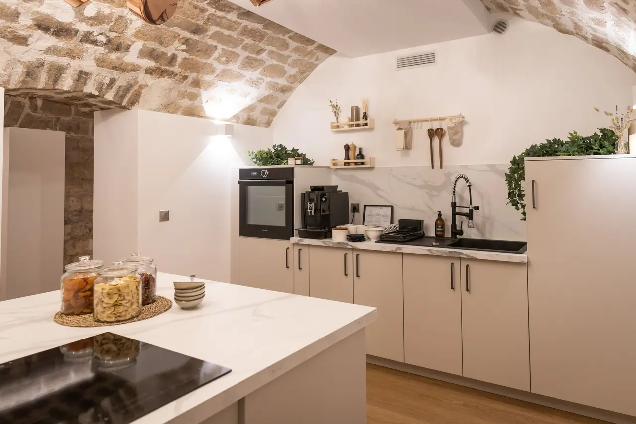 Installé sous de superbes voûtes en pierre apparente, ce showroom offre un cadre immersif au charme brut et authentique. Structuré autour d’un couloir central qui guide naturellement la circulation, l’espace se déploie en plusieurs pièces à forte identité, bar en zellige blanc, salle à manger feutrée, cave chaleureuse et espace créatif, permettant d’imaginer des scénographies variées et impactantes. Les volumes majestueux créent une toile de fond idéale pour sublimer produits, œuvres ou expériences de marque. Un lieu singulier, pensé pour accueillir lancements, expositions, dîners ou activations premium dans un esprit artistique et une atmosphère authentique.